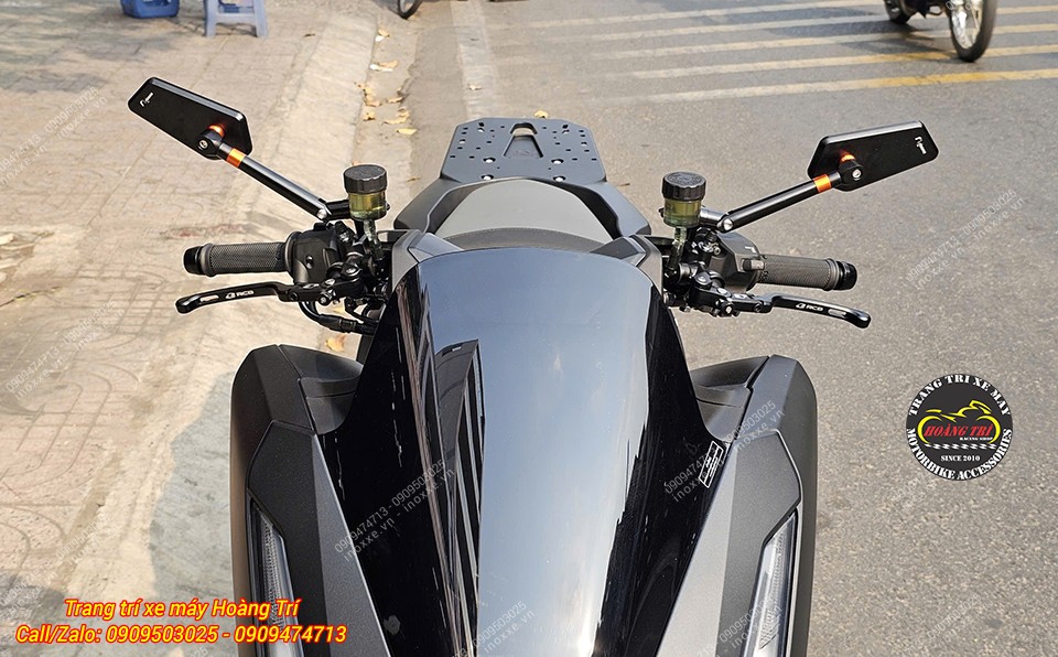 Góc trực diện tay lái với kính hậu và tay thắng thể thao