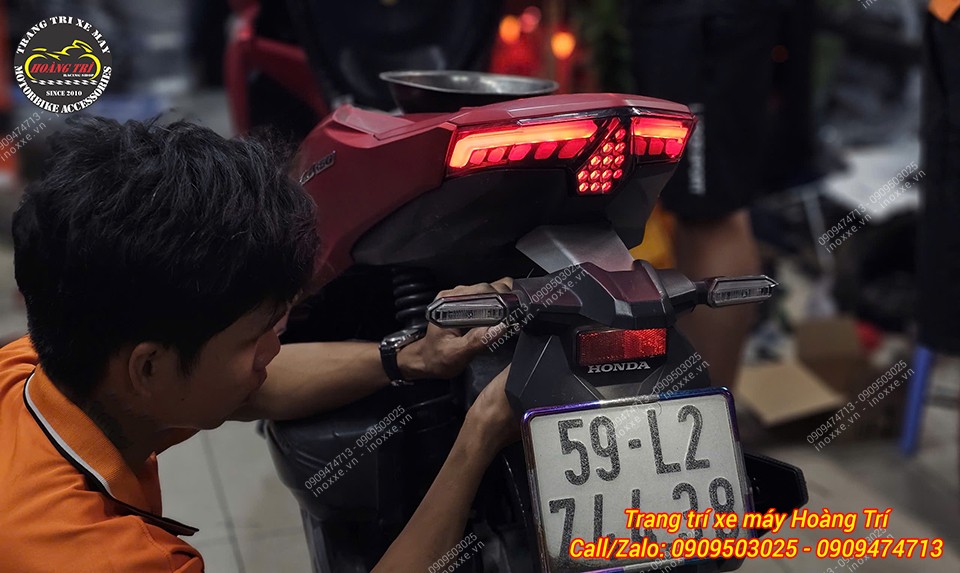 Phía trên là dãy Led Demi màu đỏ, phía dưới là tín hiệu xi nhan hiệu ứng Led chạy màu vàng