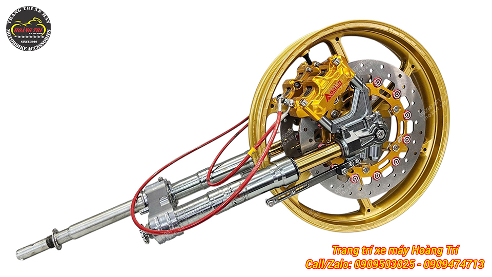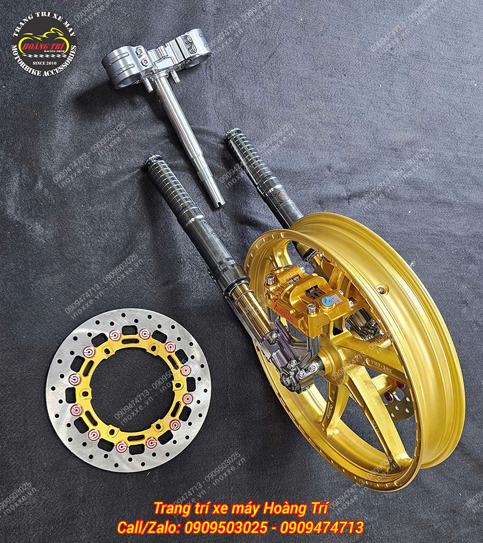 Dàn chân trước là combo phuộc USD và độ 2 đĩa trước cực nổi bật