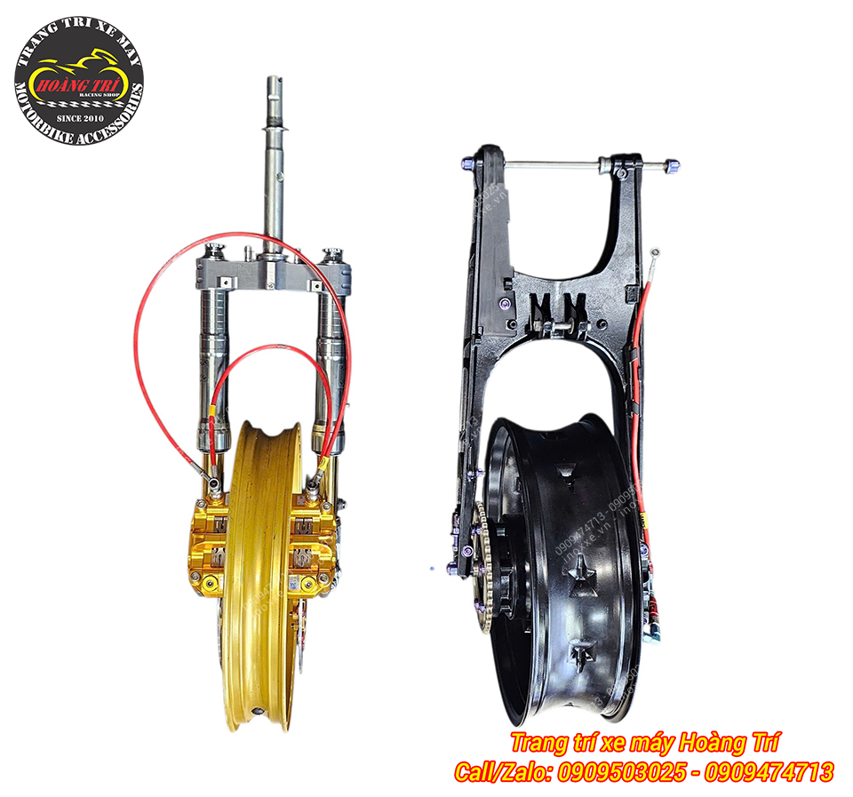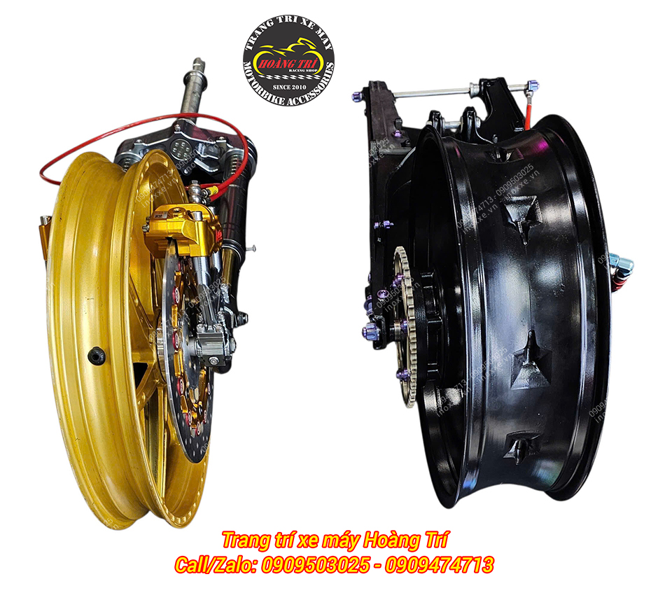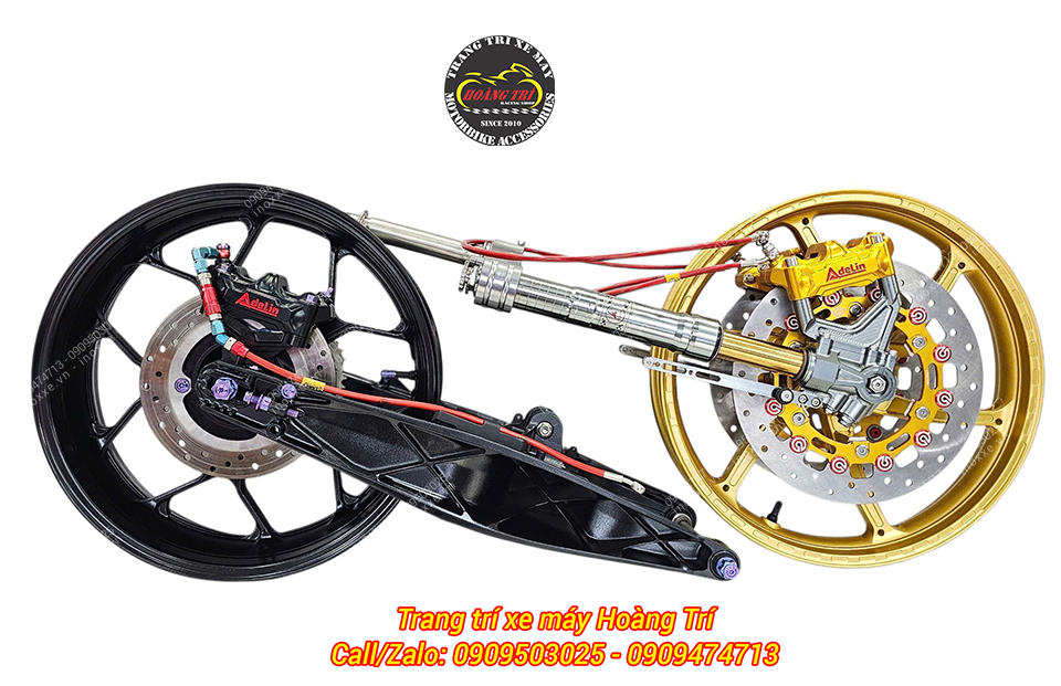 Combo dàn chân trước, dàn chân sau của xe Exciter 155 đã hoàn thiện lắp đặt