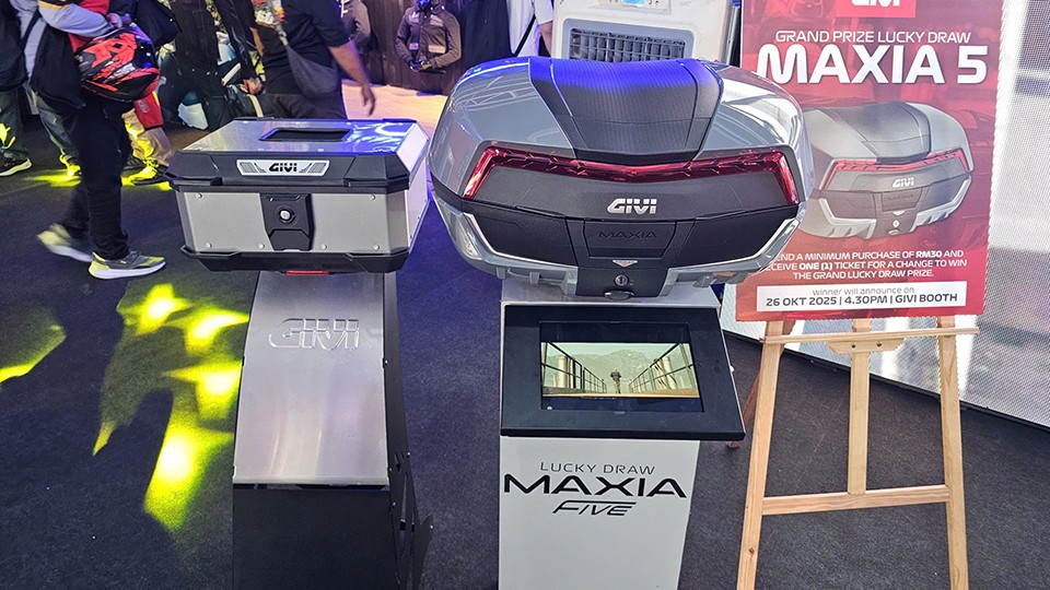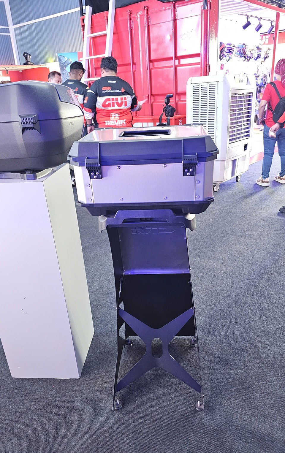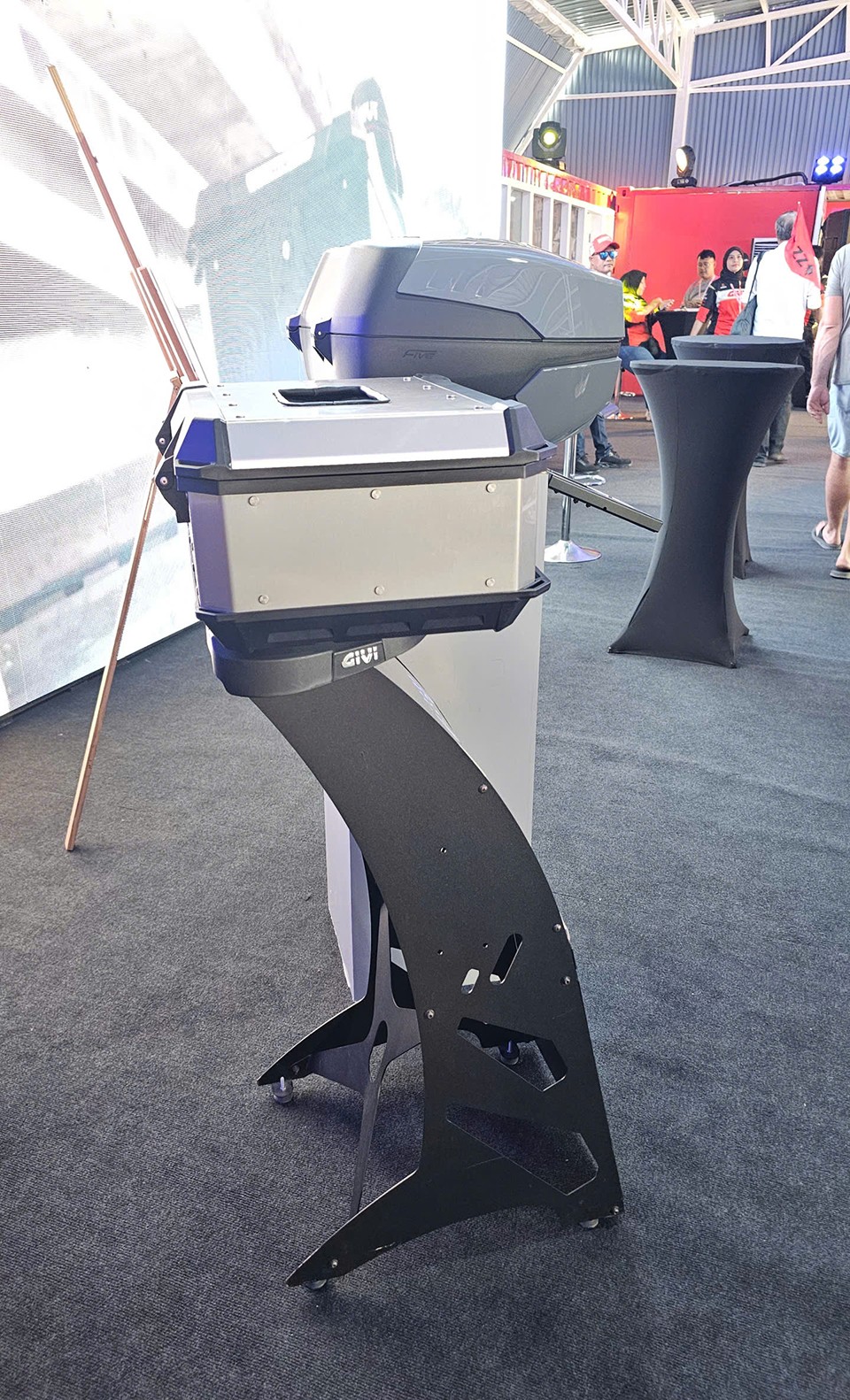 Khu trưng bày thùng Givi Maxia Five với thiết kế hiện đại, nổi bật tại sự kiện MotoGP