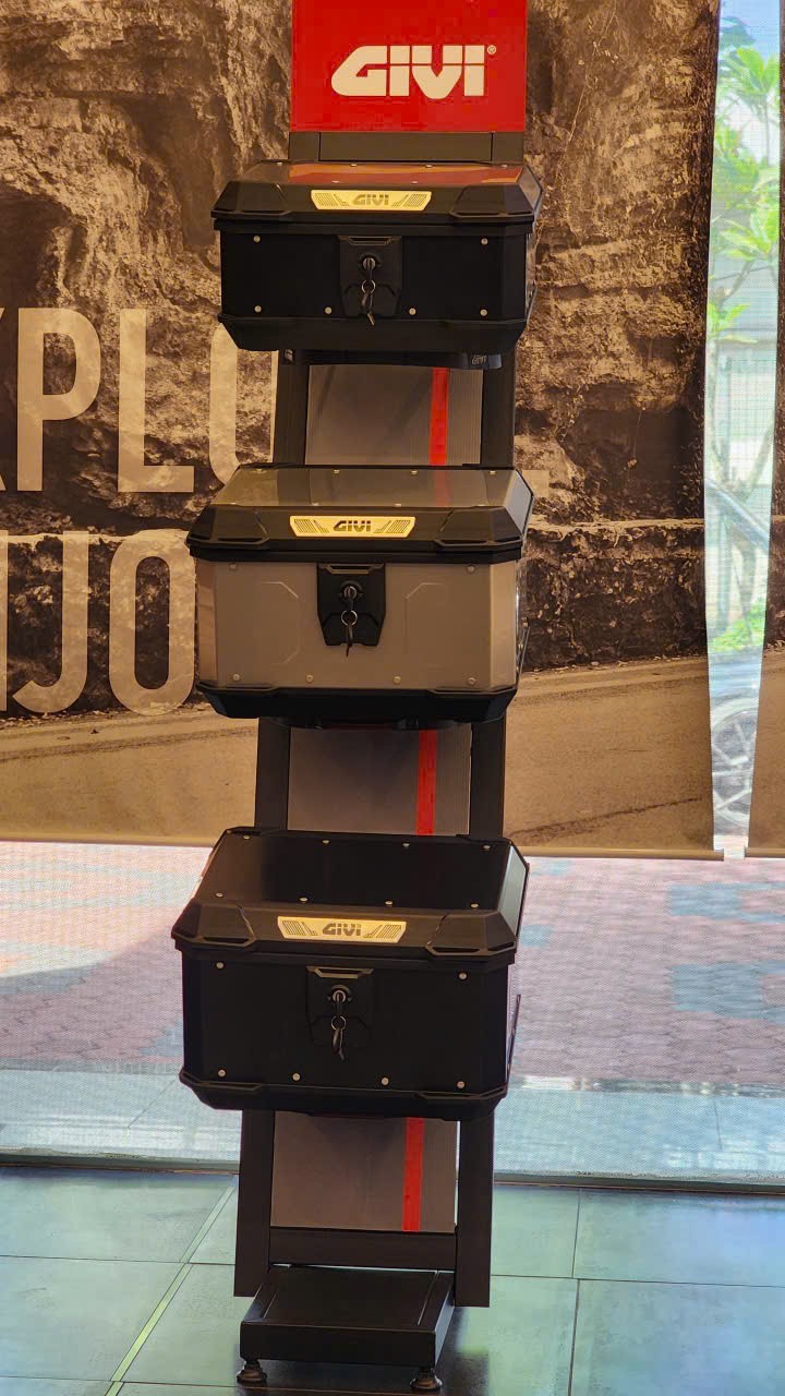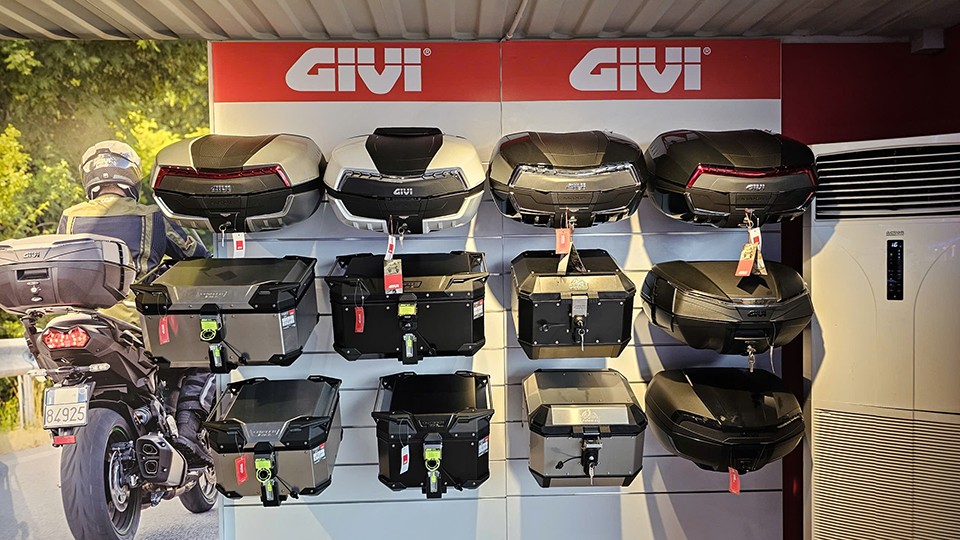 Thùng Givi trưng bày trong không gian mở bạn có thể trải nghiệm thực tế sản phẩm