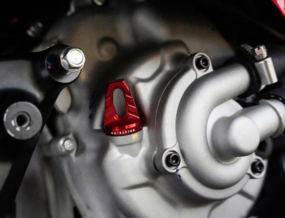 Cận cảnh ty thăm nhớt Lambretta nhôm CNC (Màu đỏ)