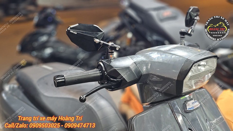 Góc nhìn trực diện xe Lambretta sau khi nâng cấp mẫu kính mới tại Hoàng Trí Shop