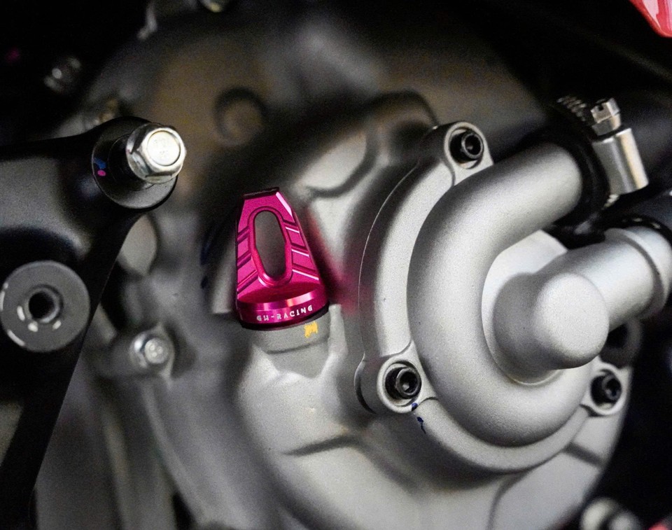 Cận cảnh ty thăm nhớt Lambretta nhôm CNC (Màu hồng)