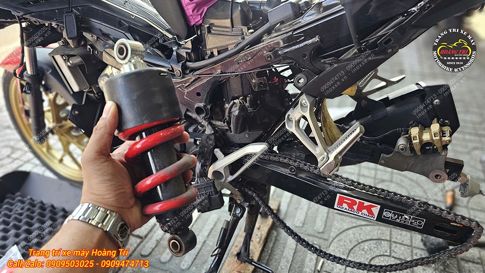 Quá trình lắp đặt phuộc sau mới cho Winner X tại Hoàng Trí Shop