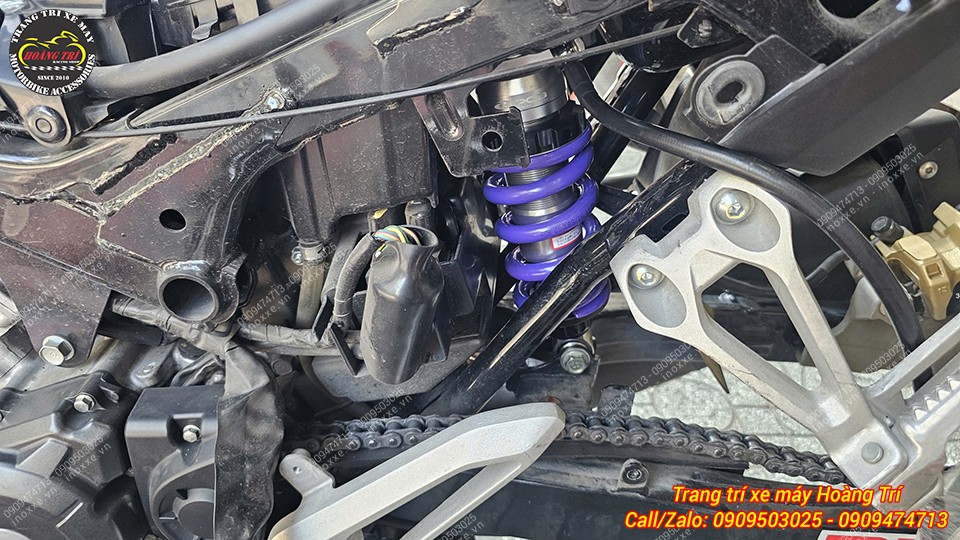 Phuộc sau RCB đã lắp hoàn thiện, tăng độ êm ái và ổn định khi vận hành