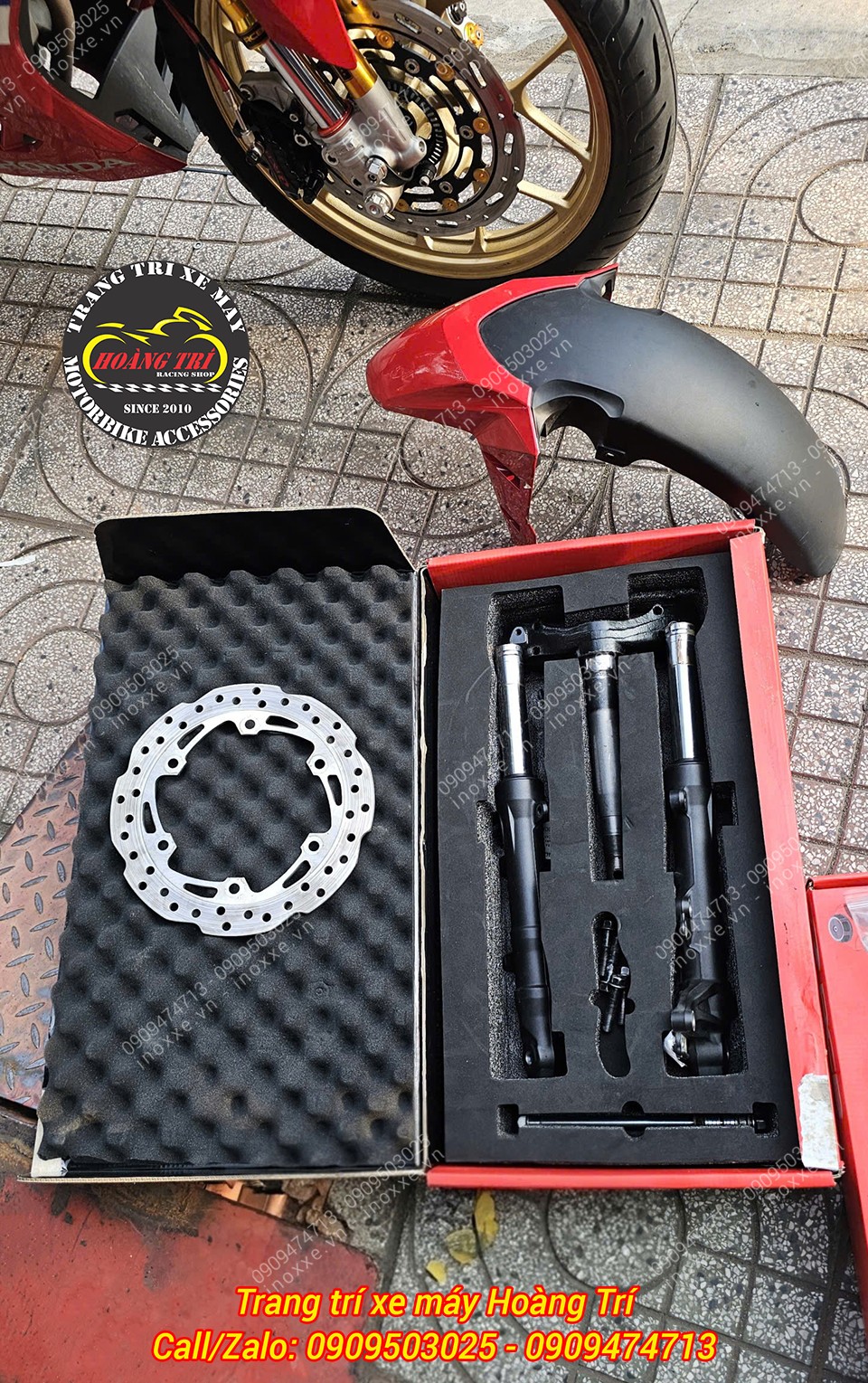 Cận cảnh phuộc trước RCB cùng đĩa thắng lớn Boushi tăng hiệu suất phanh cho xe