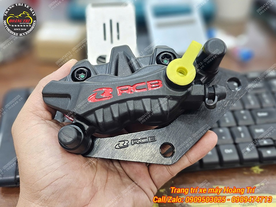 Cận cảnh heo dầu trước RCB S26 màu đen lắp thực tế tăng độ bám đĩa và hiệu suất phanh vượt trội