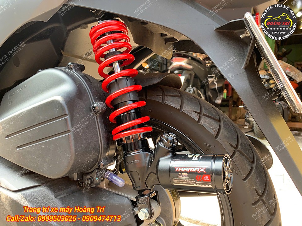 Cận cảnh phuộc sau Racing Boy Tarmax lò xo đỏ nổi bật, hoàn thiện chắc chắn và thẩm mỹ cao