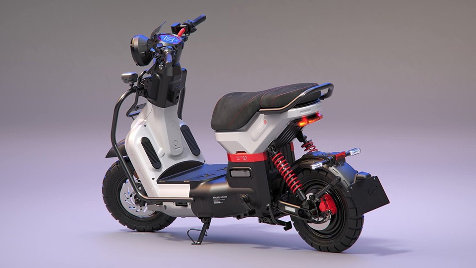 Phiên bản xe điện TYPE3 Pro phối màu trắng - đỏ, thể hiện rõ tổng thể dáng xe