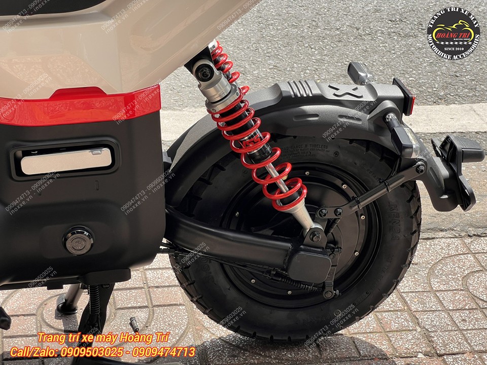 Góc chụp tổng thể bánh sau và phuộc mới lắp tạo nên sự thay đổi rõ nét cho xe