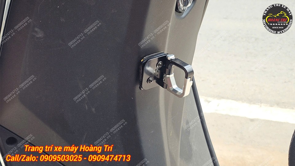 Cận cảnh móc treo CNC tiện lợi gắn tại vị trí móc treo xe Vero X chắc chắn, gọn gàng
