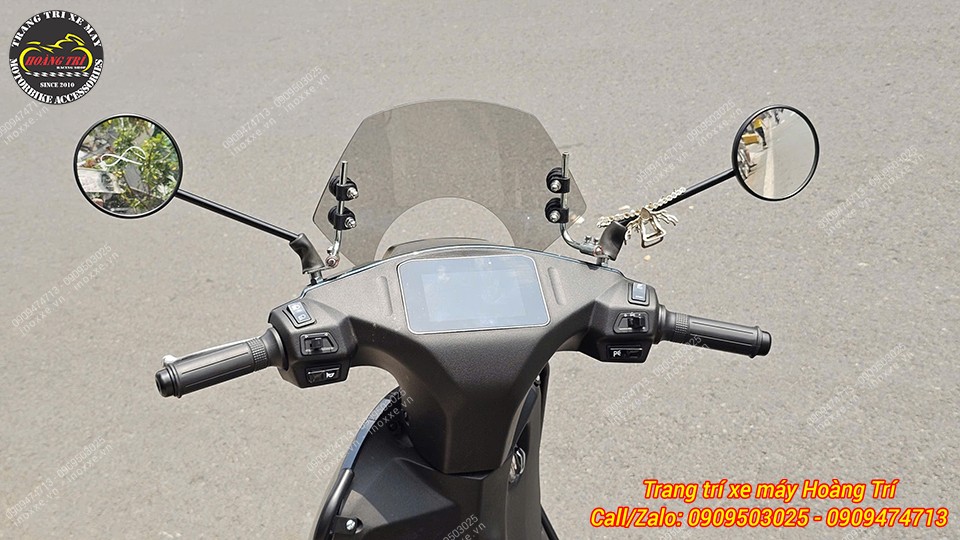 Vị trí lắp đặt kính chắn gió cho Vero X tại chân kính, dễ dàng lắp đặt cho xe
