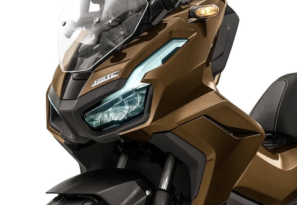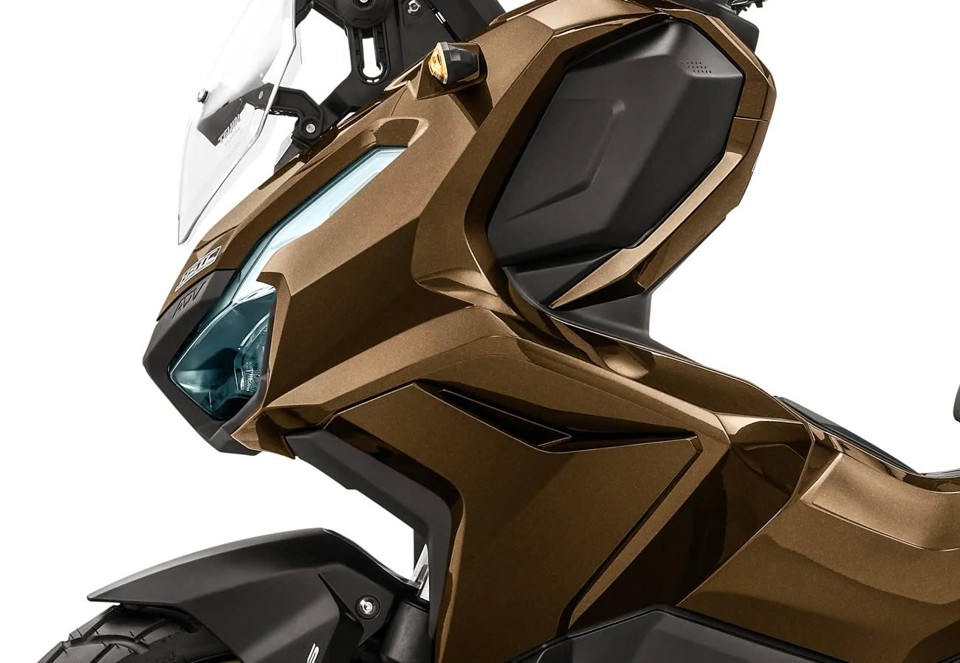 Góc chụp đầu xe ADV 160 màu nâu RoadSync nổi bật với hệ thống đèn pha LED