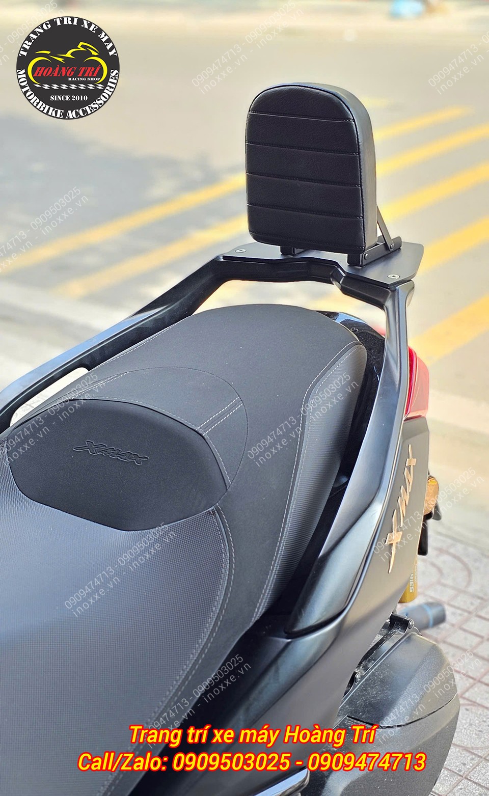 Trên hình là baga sau XMAX 300 một phụ kiện không thể thiếu khi lắp baga sau bật gấp