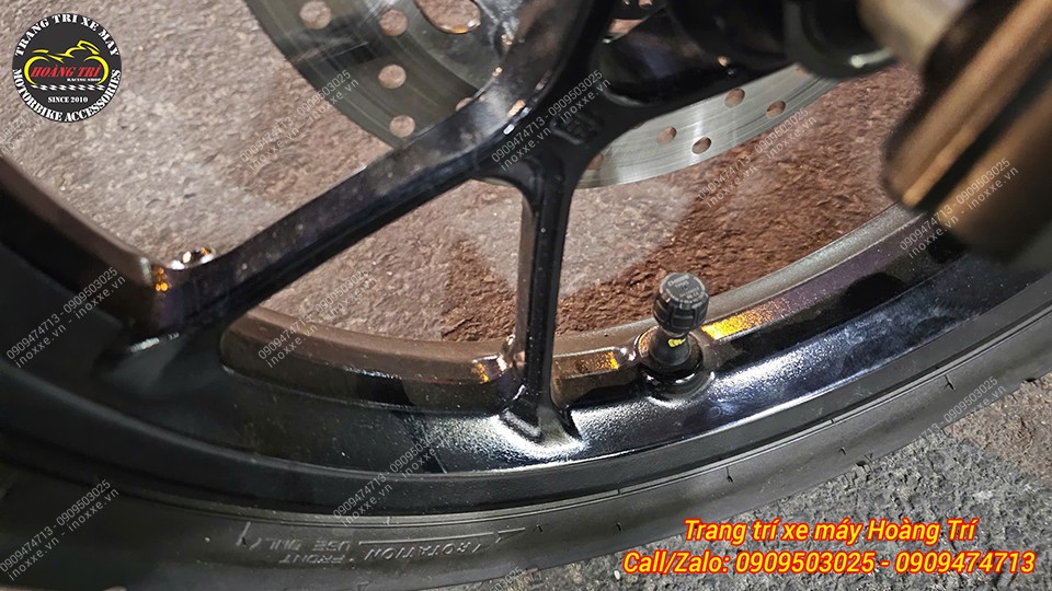 Cận cảnh cảm biến áp suất lốp bánh trước đã lắp lên xe
